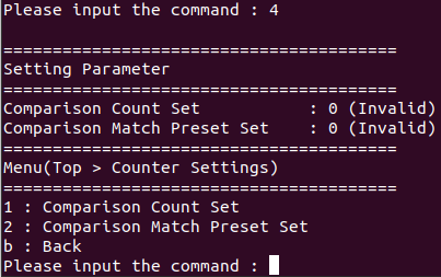 - When selecting [b: Back] from the Counter Settings menu, you will return to the Top menu.