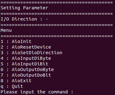 - To perform data acquisition processing again, select the command [1 : AioInit] and specify a new device name to perform device initialization processing
