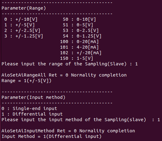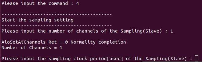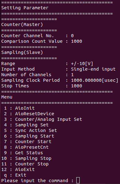 - To perform data acquisition processing again, select the command [1 : AioInit] and specify a new device name to perform device initialization processing.
