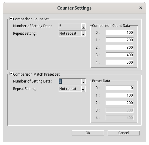 ・For the Comparison Count Set or Comparison Match Preset Set, the processing becomes effective when the check box is attached.