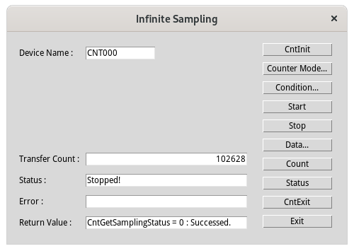 This is a sample that performs repeated Sampling transfers using the counter function for devices equipped with the high-performance counter.