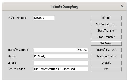 Click DioExit button to stop using the device.