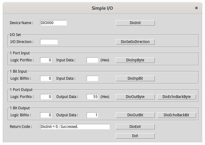 Click the DioExit button to stop using the device.