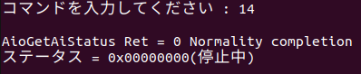 ・[14 : AioGetAiStatus]をコマンド選択すると、ステータスが表示されます。