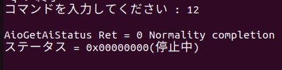 ・[12 : AioGetAiStatus]をコマンド選択すると、ステータスが表示されます。