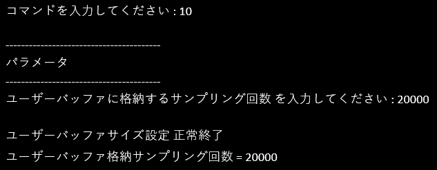 ・[10 : ユーザーバッファサイズ設定]をコマンド選択すると、ユーザバッファに格納するサンプリング回数を指定することができます。