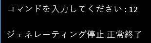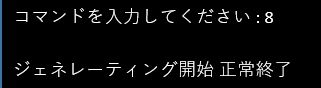 ジェネレーティング用データが生成されると、CUIメニューが再度表示されます。