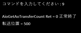 ・[9 : AioGetAoTransferCount]をコマンド選択すると、転送位置が表示されます。