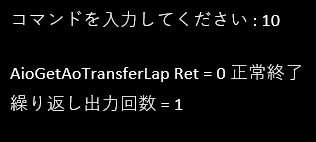 ・[10 : AioGetAoTransferLap]をコマンド選択すると、繰り返し出力回数が表示されます。