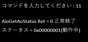 ・[11 : AioGetAoStatus]をコマンド選択すると、ステータスが表示されます。