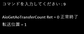 ・[9 : AioGetAoTransferCount]をコマンド選択すると、転送位置が表示されます。