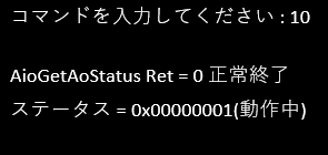 ・[10 : AioGetAoStatus]をコマンド選択すると、ステータスが表示されます。