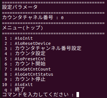 カウンタチャネル番号を指定すると、CUIメニューが再度表示されます。
