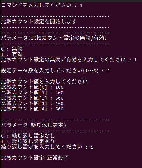 比較カウント設定の指定が完了すると、カウンタ設定メニューが再度表示されます。
