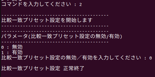 プリセット値を指定するとAioPresetCntが実行され、CUIメニューが再度表示されます。