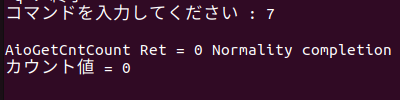 ・[7 : AioGetCntCout]をコマンド選択すると、カウント値が表示されます。