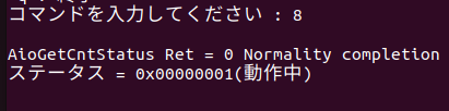 ・[8 : AioGetCntStatus]をコマンド選択すると、ステータスが表示されます。