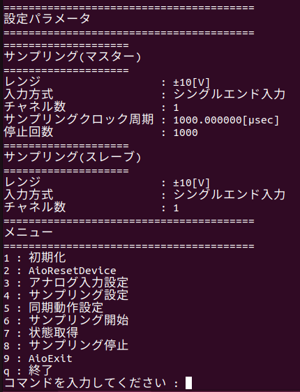 ・サンプリング設定が完了すると、CUIメニューが再度表示されます。