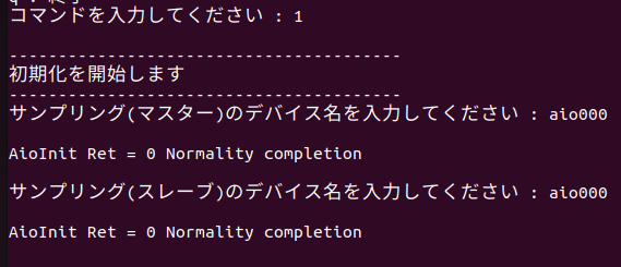 デバイス名を指定すると、AioInitが実行され、CUIメニューが再度表示されます。