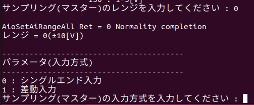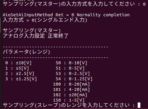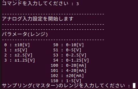 ・[3 : アナログ入力設定]をコマンド選択すると、サンプリング(マスター)のレンジを指定できます。