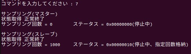 ・[7 : 状態取得]をコマンド選択すると、サンプリング回数やステータスが表示されます。