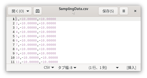 ・[マスターデバイス取得データファイルの出力...]ボタンを押すと、マスター側テキストボックス内に表示されたサンプリングデータをテキストファイルへ保存することができます。