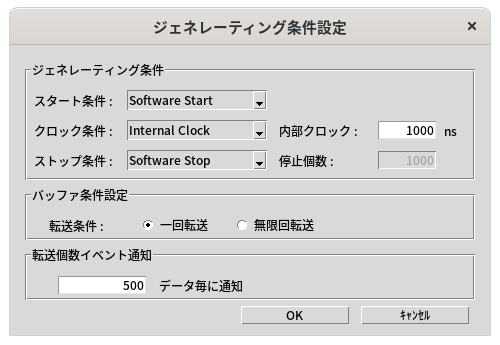 ジェネレーティング条件を設定し[OK]ボタンを押します。