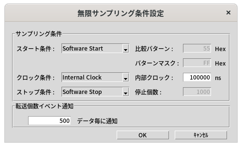 再度、[転送スタート]する場合は、内部クロックの値を大きくしてください。