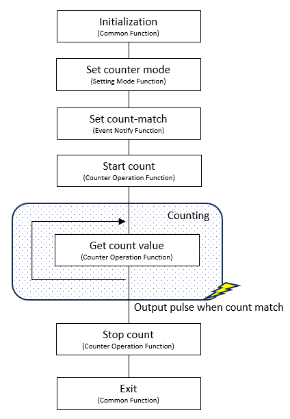 The processing procedure for pulse output when count match is showed as the following flow chart.