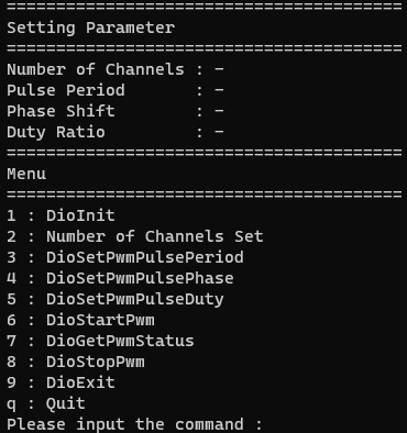 This is a sample that performs PWM output settings, start/stop of output, and status acquisition.