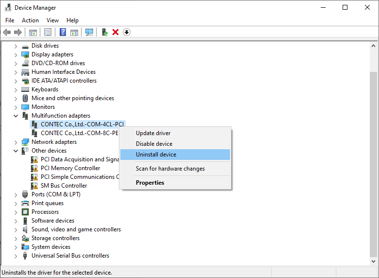④ Select the installed board and execute [Right-click] [Uninstall device].