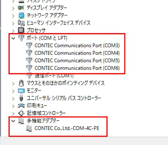 ・「ポート(COMとLPT)」配下に、チャネル数分のCOMポート(4CHタイプなら4ポート)