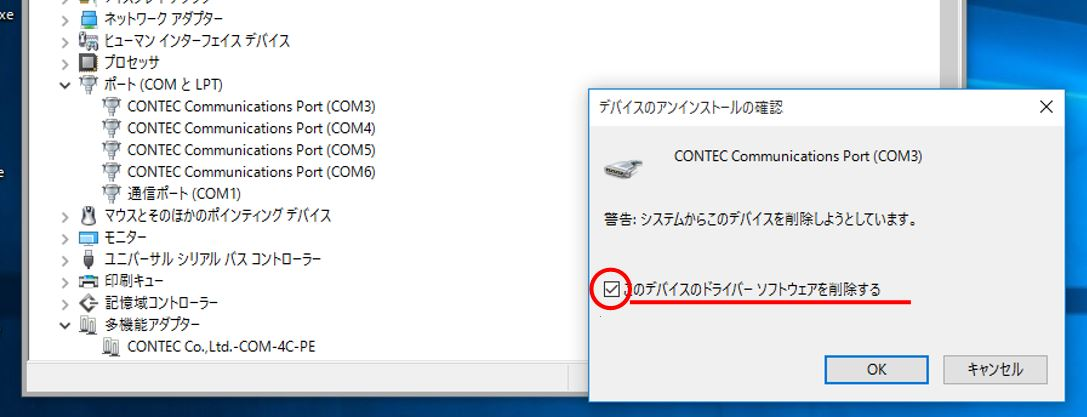 全てのボードを削除する場合に限り、最後のデバイスを削除するときのみ [このデバイスソフトウェアを削除する]のチェックボックスへ チェックを入れて削除してください。