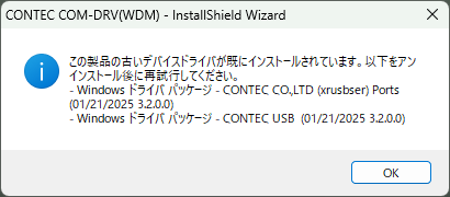 メッセージ例:COM-DRV for COM-4xx-USBがインストール済みの場合