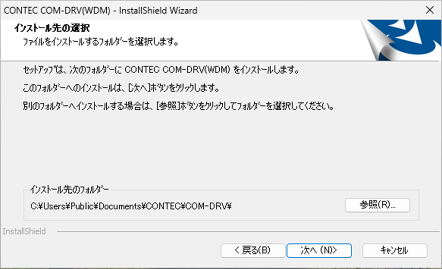 インストール先フォルダーを変更する場合は、[参照(R)...]をクリックしてください。
