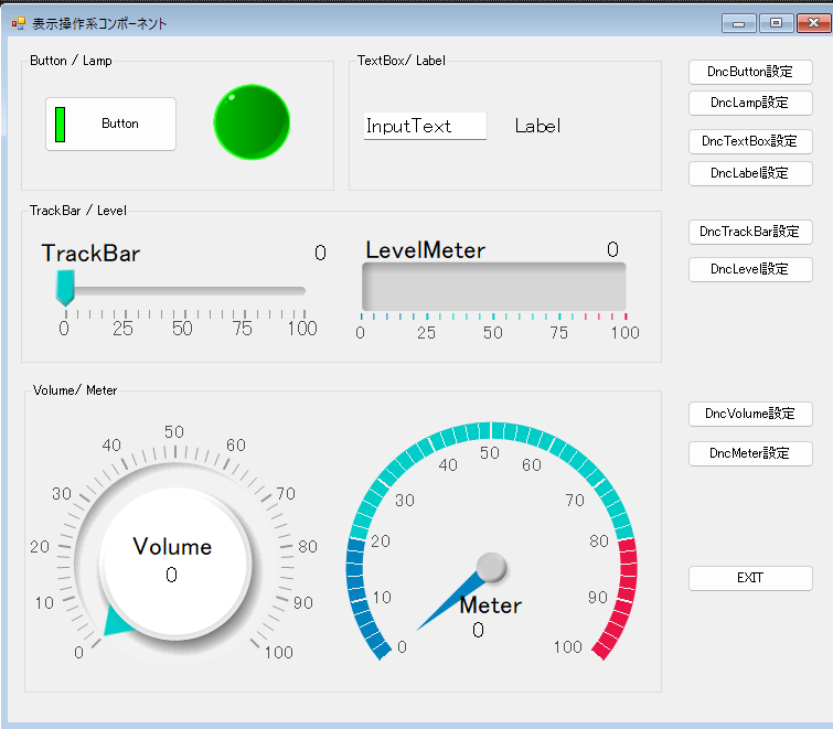 DAQ-DNCの表示系コンポーネントや、操作系コンポーネントのサンプルです。