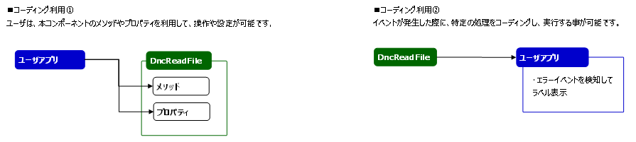 Visual C#や、Visual Basic .NETなどで、コンポーネントのメソッド関数を呼び出したり、プロパティ変数の設定ができます。