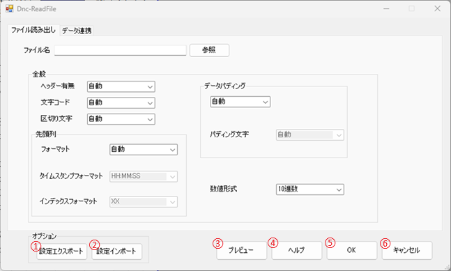 本設定画面より、ファイル名の指定や各種詳細タブ表示を実施頂くことが可能です。