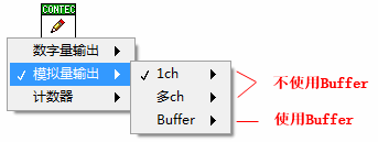 *使用Buffer的模拟输量输出,如果在初始状态下未连接,则与指定1相同,使用一个通道