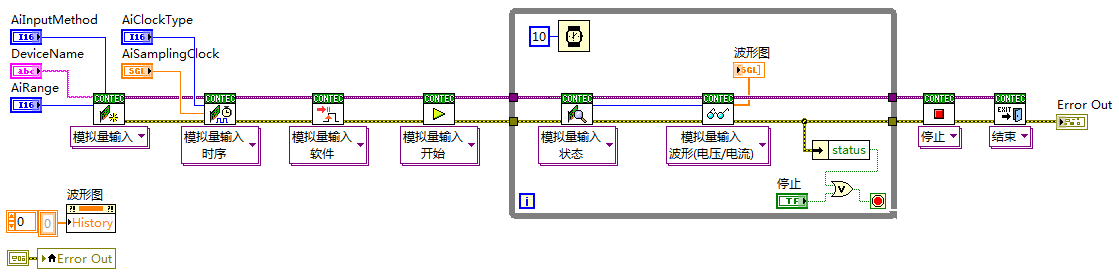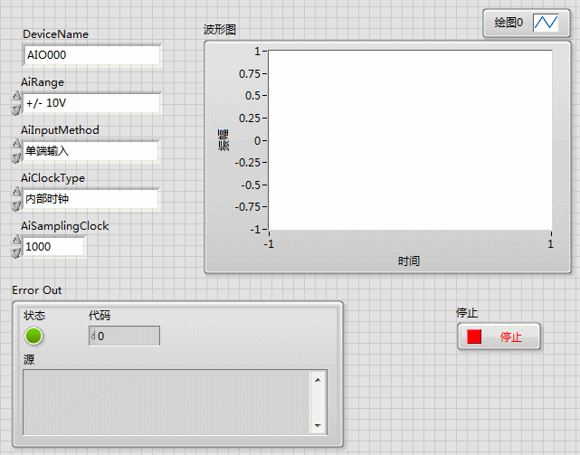 [停止设定]是[软件],因此直到[停止]VI执行时采样停止。