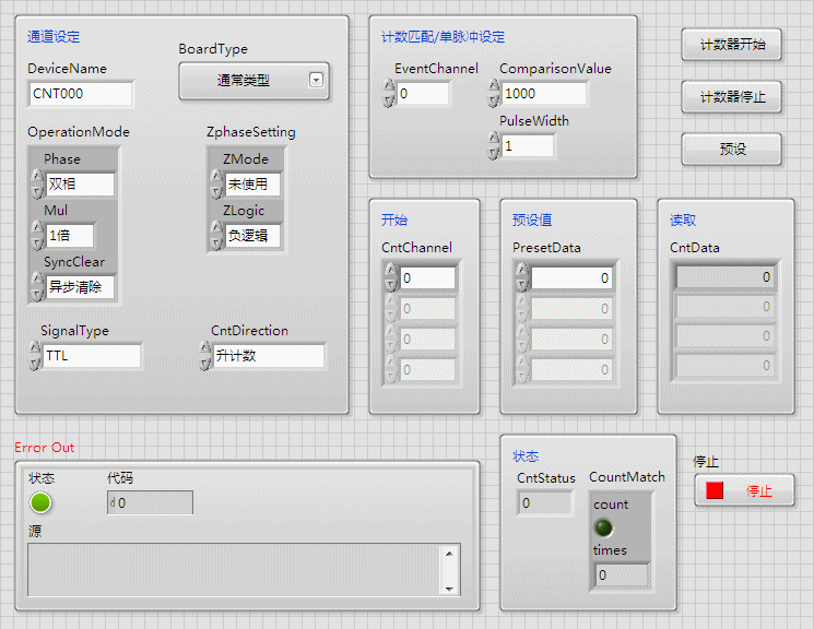 当使用此功能时,可以通过[状态]VI检测计数值达到指定值(计数匹配),