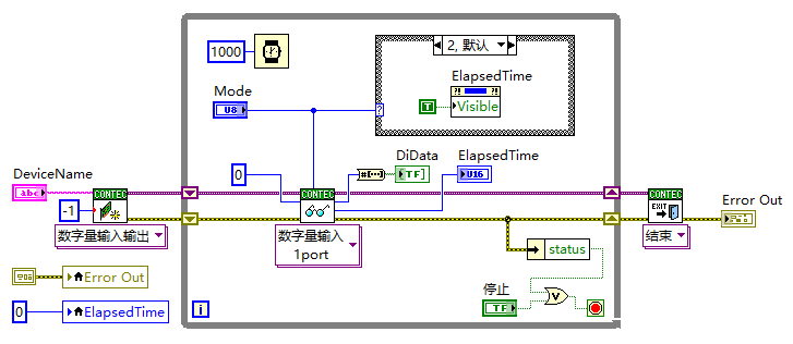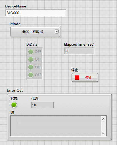 这是专用于无线I/O系列数字设备的示例。 您可以看到动作的不同,具体取决于读取VI的“Mode”设置。