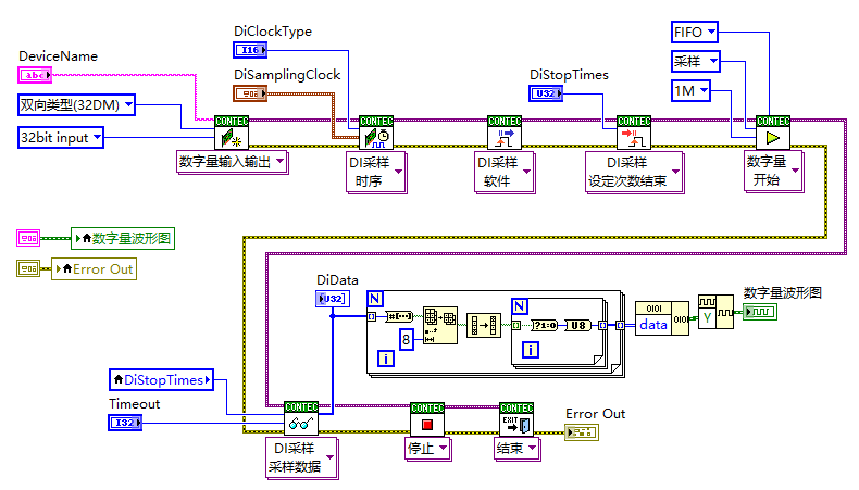 当指定采样时钟和次数后执行时,对数字量输入进行采样。