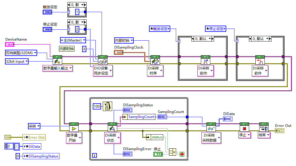 从设备使用“数字量同步从”例子(SyncDiSlave.vi)。