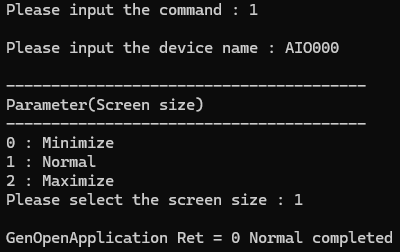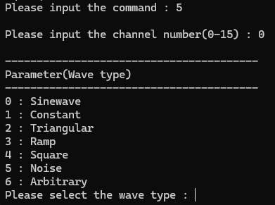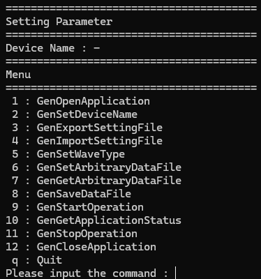 - Please select [1: GenOpenApplication] command if you want to operate C-WaveformGenerator, again.