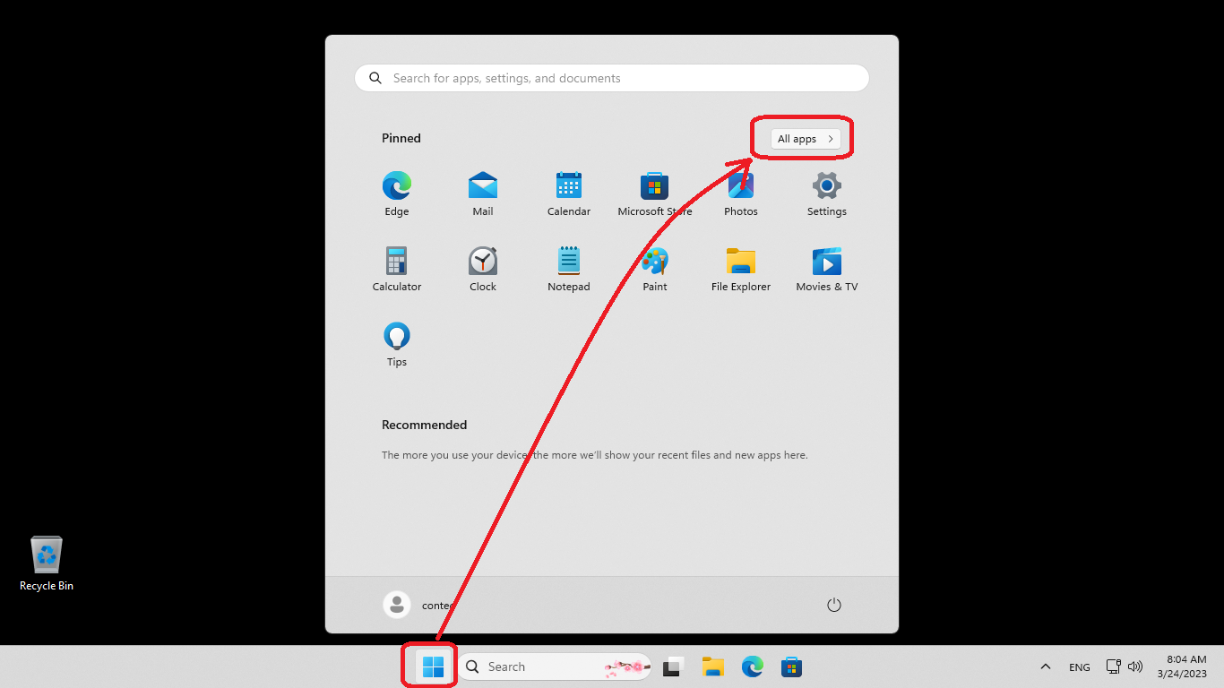 1. Select "All apps" from Start Menu.