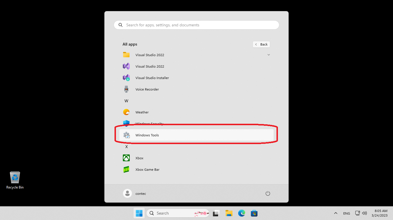 2. Select "Windows Tools" from "All apps".