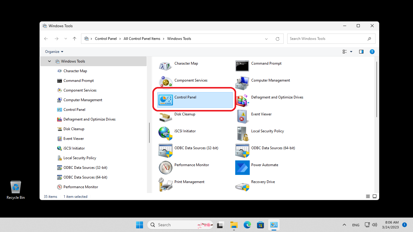 3. Select "Control Panel" from "Windows Tools".