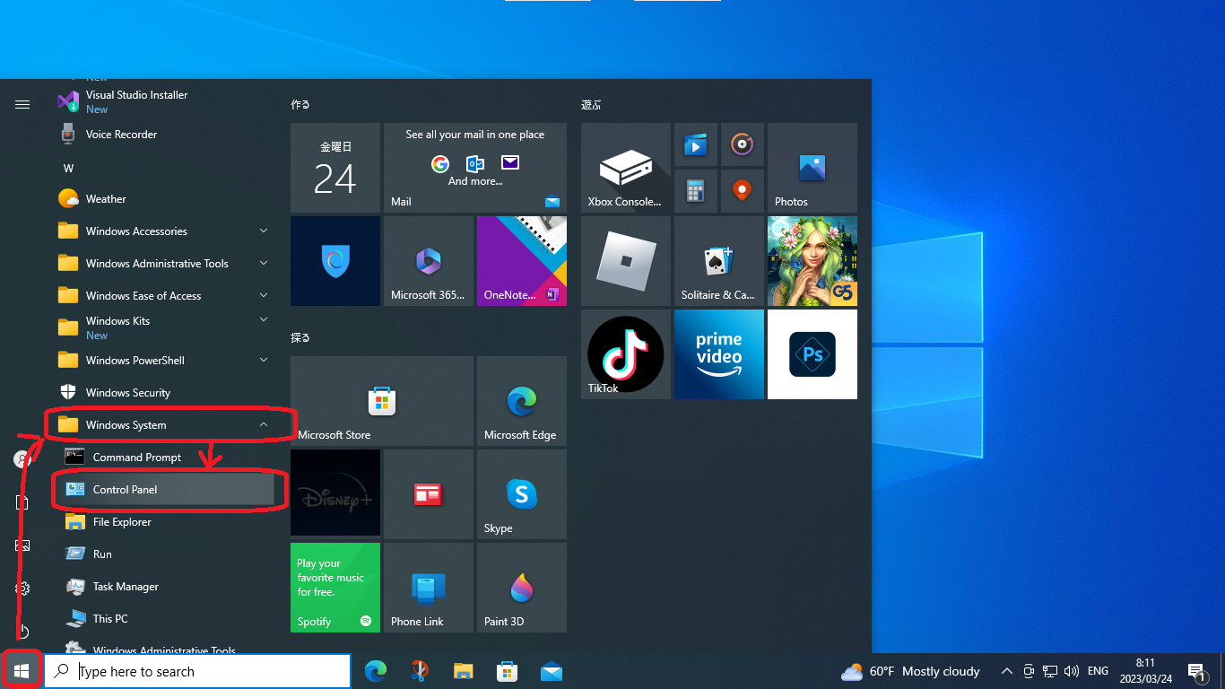 1. Select "Windows System" from Start menu. And you can see "Control Panel" in "Windows System" folder.