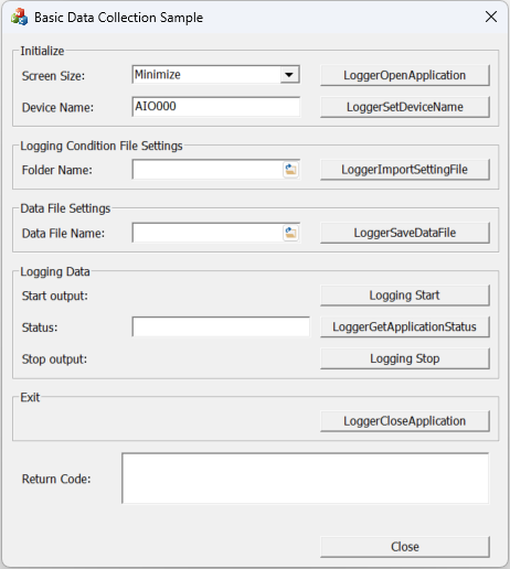 - Click the [Logging Stop] button in the main window to stop data input